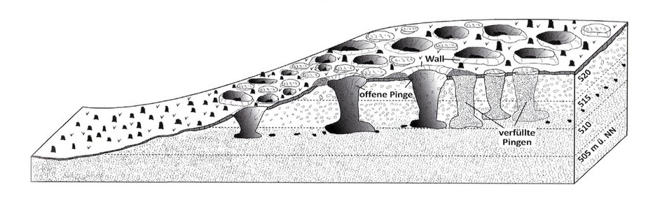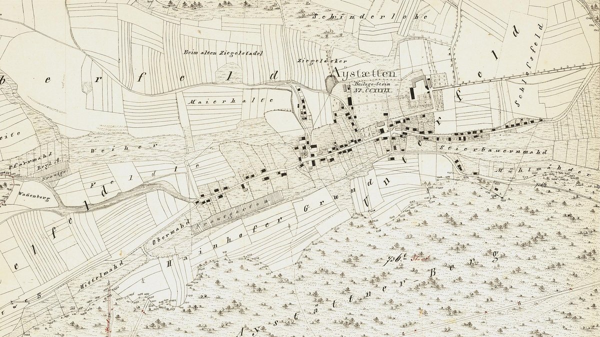 Schon vor über 1.000 Jahren wird im 8. bis 10. Jahrhundert am Aystetter Berg Eisenerz abgebaut und verhüttet, wie noch heute sichtbare Trichtergruben im Wald belegen.